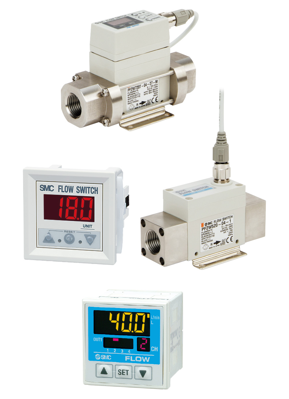 4 different flow ranges can be connected to 1 controller.